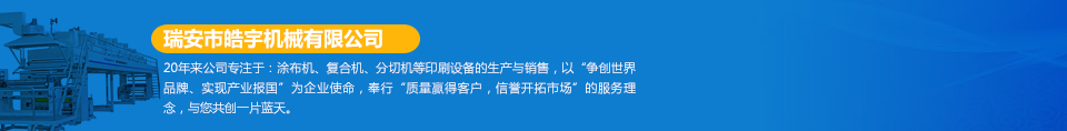 瑞安市皓宇機(jī)械有限公司是瑞安一家私營責(zé)任有限公司,注冊資金200萬,員工40余人,是具有獨(dú)立法人地位,專業(yè)生產(chǎn)定做各種非標(biāo)準(zhǔn)涂布機(jī)、復(fù)合機(jī)、印刷機(jī)、分切機(jī)、壓膜機(jī)等機(jī)械設(shè)備的制造廠。公司的機(jī)器主要用于生產(chǎn)保護(hù)膜、膠帶、雙面膠、不干膠、相紙、油畫布、汽車防爆膜、熱轉(zhuǎn)印、燙金膜、離型膜、離型紙、軟包裝印刷、軟包裝復(fù)合、軟包裝分切等各種產(chǎn)品... [詳細(xì)]